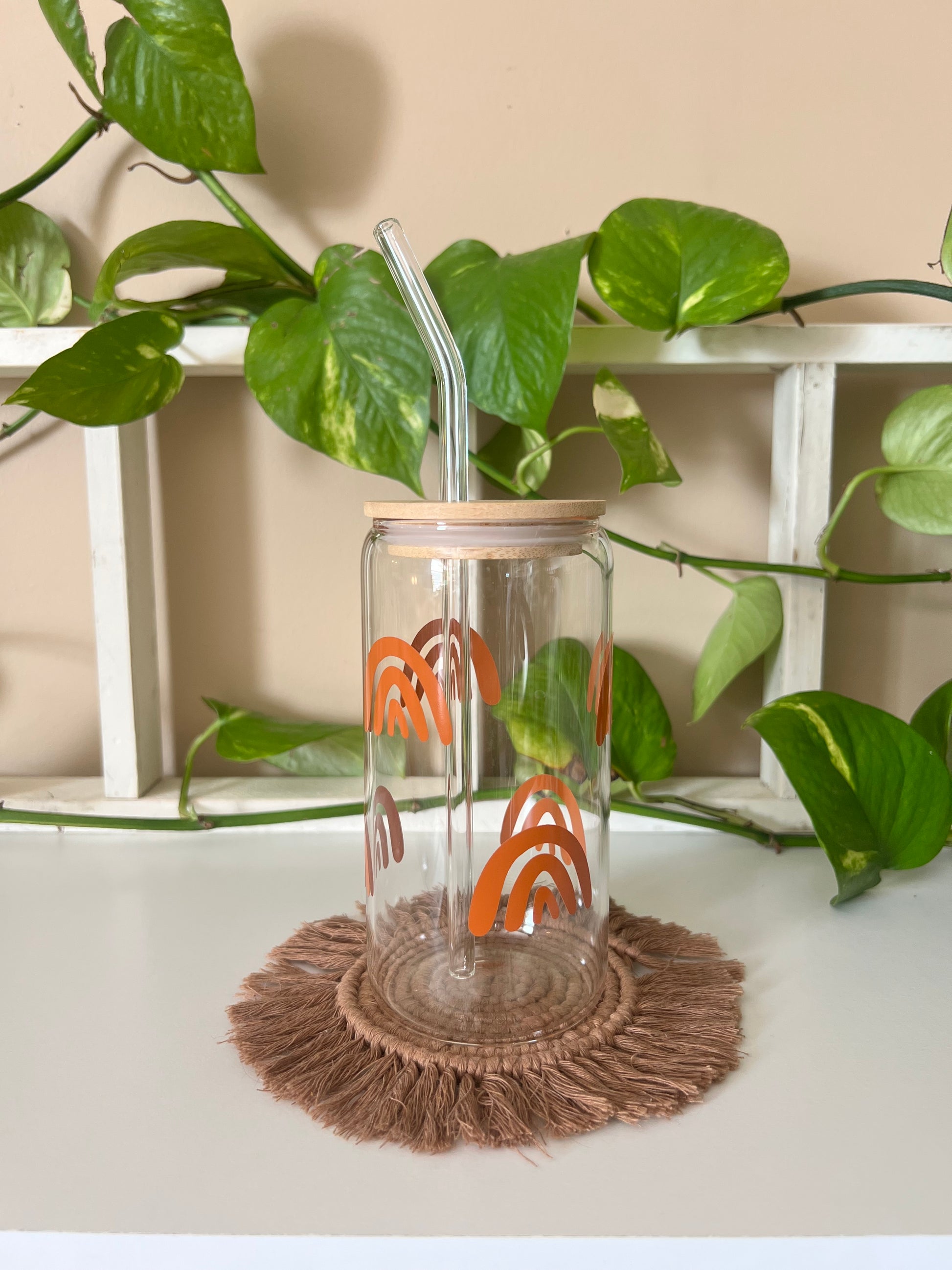 This glass cup is the perfect choice for your iced beverage, while also showing off a little boho style. This item also makes a great gift!