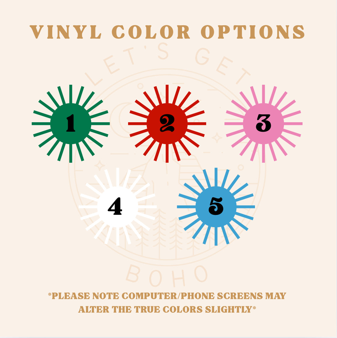 - High quality permanent vinyl (colors 2 and 3 in pictures)