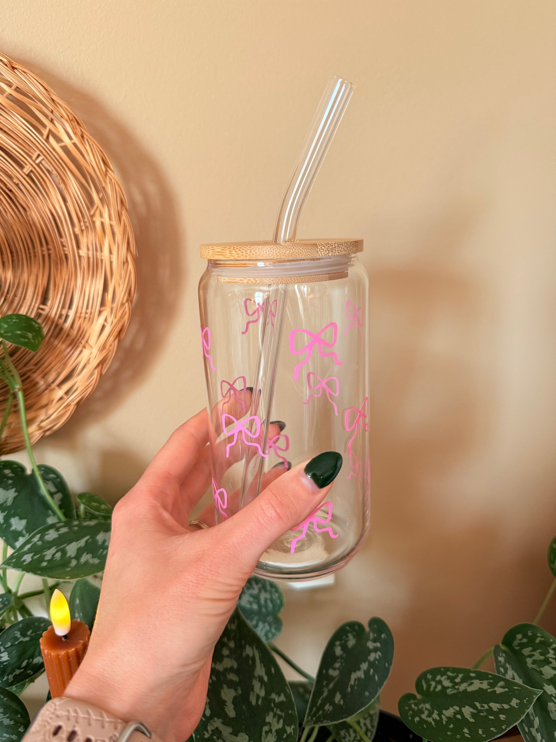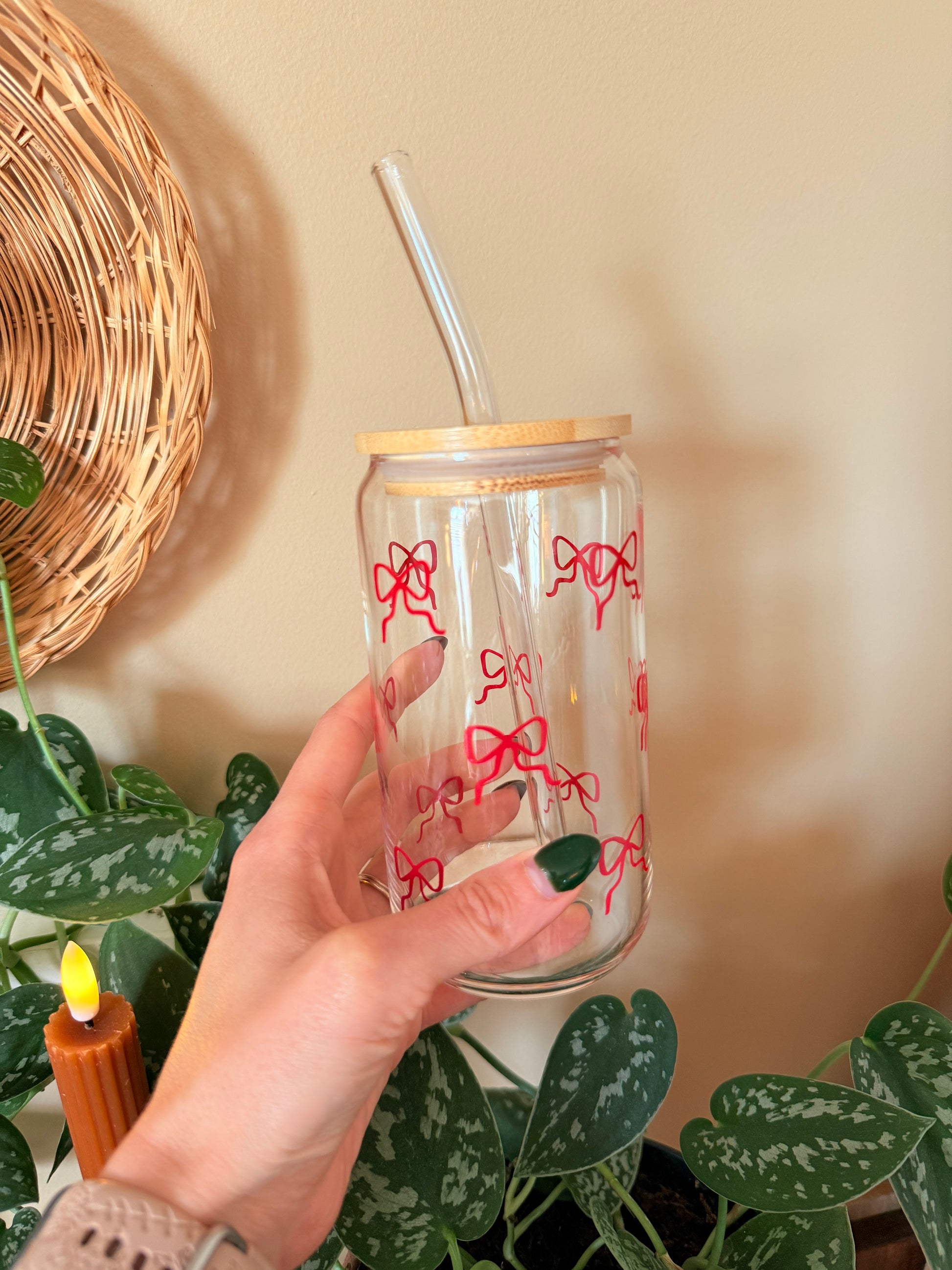Christmas Coquette Bows Glass Cup