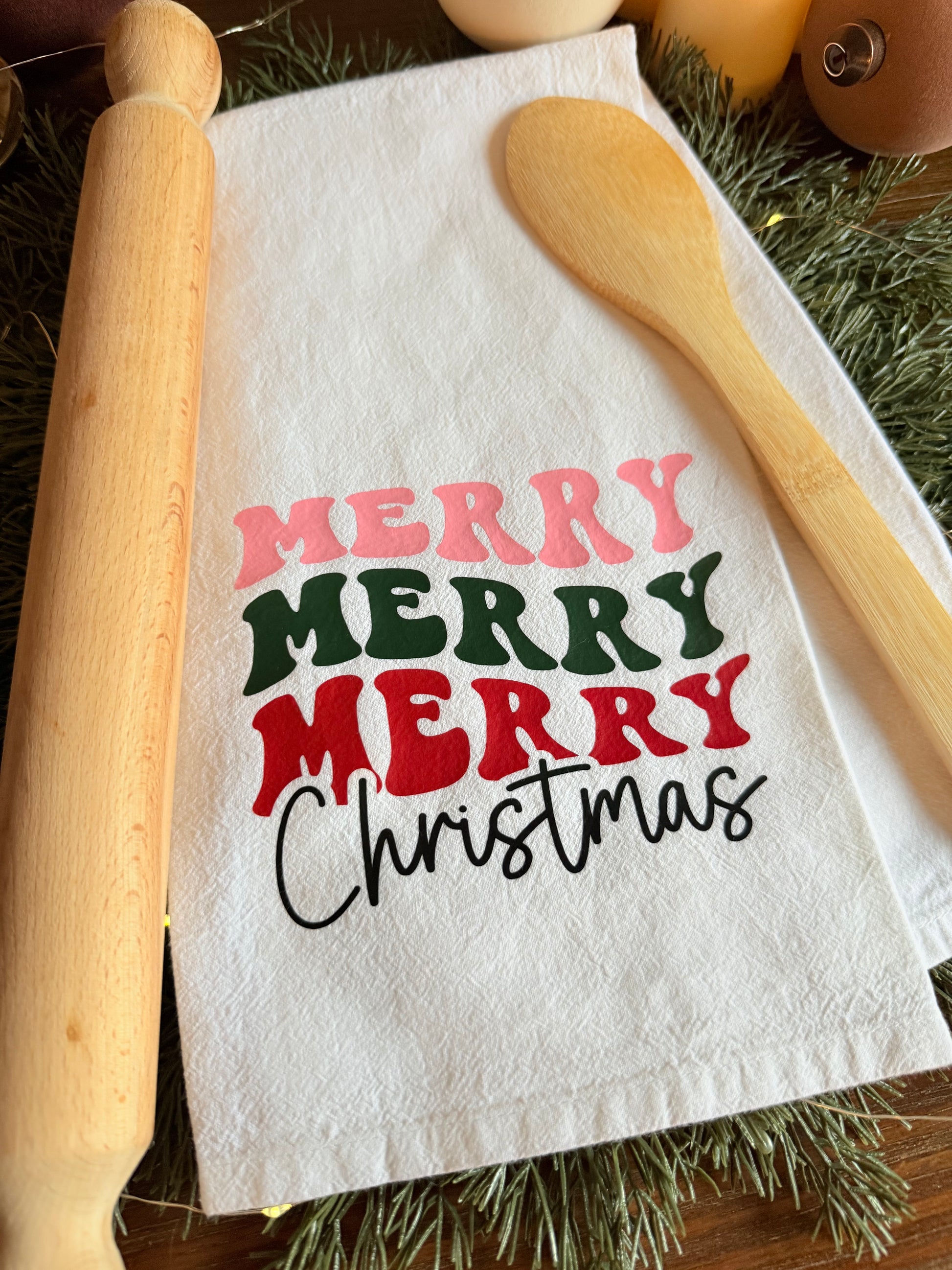 This towel is sure to make the perfect addition to your 70s style or girly Christmas decor this holiday season! This towel is intended for decoration purposes only. The design was created using heat transfer vinyl.