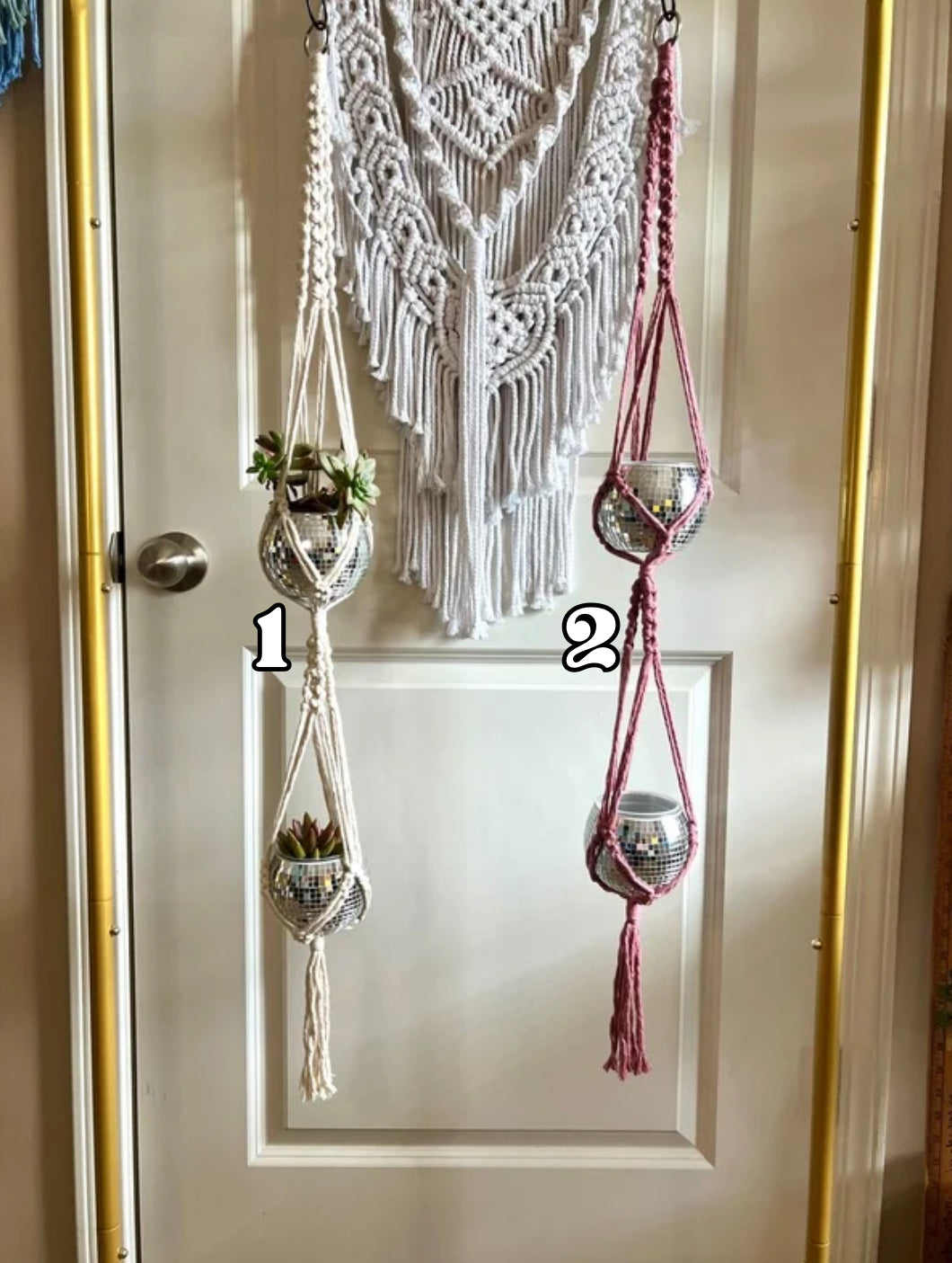 Add sparkly flair to your indoor garden with a macrame double disco ball planter! They also make great gifts for a plant loving friend!